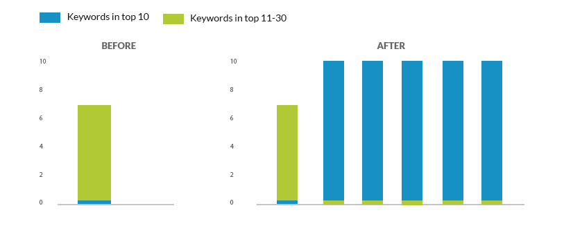 This SEO case study explores how we were able to achieve top 10 rankings for almost 10 key terms relevant to the client line of business. We employed white-label SEO solutions in order to accomplish this goal and saw a marked increase in website traffic that aided in higher volume of conversions.