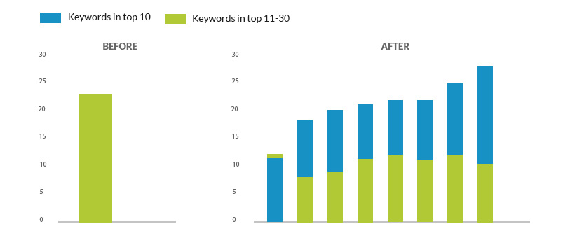 This SEO case study explores how we were able to achieve top 10 rankings for almost 20 key terms relevant to the client line of business. We employed white-label SEO solutions in order to accomplish this goal and saw a marked increase in website traffic that aided in a higher volume of conversions.