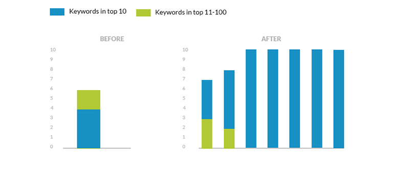 This SEO case study explores how we were able to achieve top 10 rankings for almost 10 key terms relevant to the client line of business. We employed white-label SEO solutions in order to accomplish this goal and saw a marked increase in website traffic that aided in a higher volume of conversions.