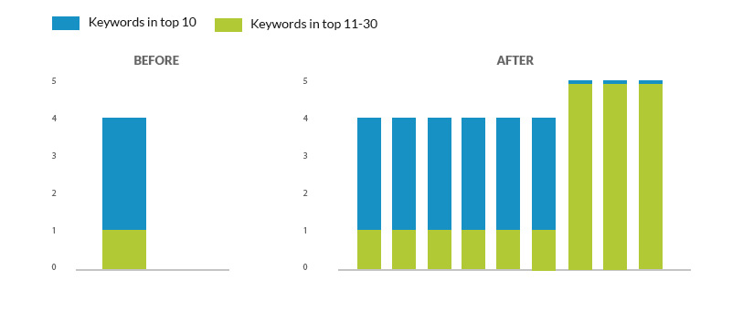 Additionally, we identified the problem of keyword stuffing on some of the pages. Since this issue can negatively impact Google rankings, we concentrated on generating fresh content with a higher emphasis on readability and lesser occurrences of the keyword.