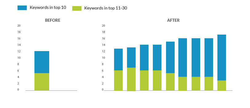 This SEO case study explores how we were able to achieve top 10 rankings for almost 20 key terms relevant to the client line of business. We employed white-label SEO solutions in order to accomplish this goal and saw a marked increase in website traffic that aided in a higher volume of conversions.